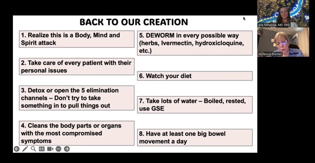 At the end of the presentation of Dr. Ana Maria Mihalcea and Dr. Bremer, they shared it's not just about detoxing from the vaccine. It is vitally important to understand this is an attack to the body, mind and spirit.